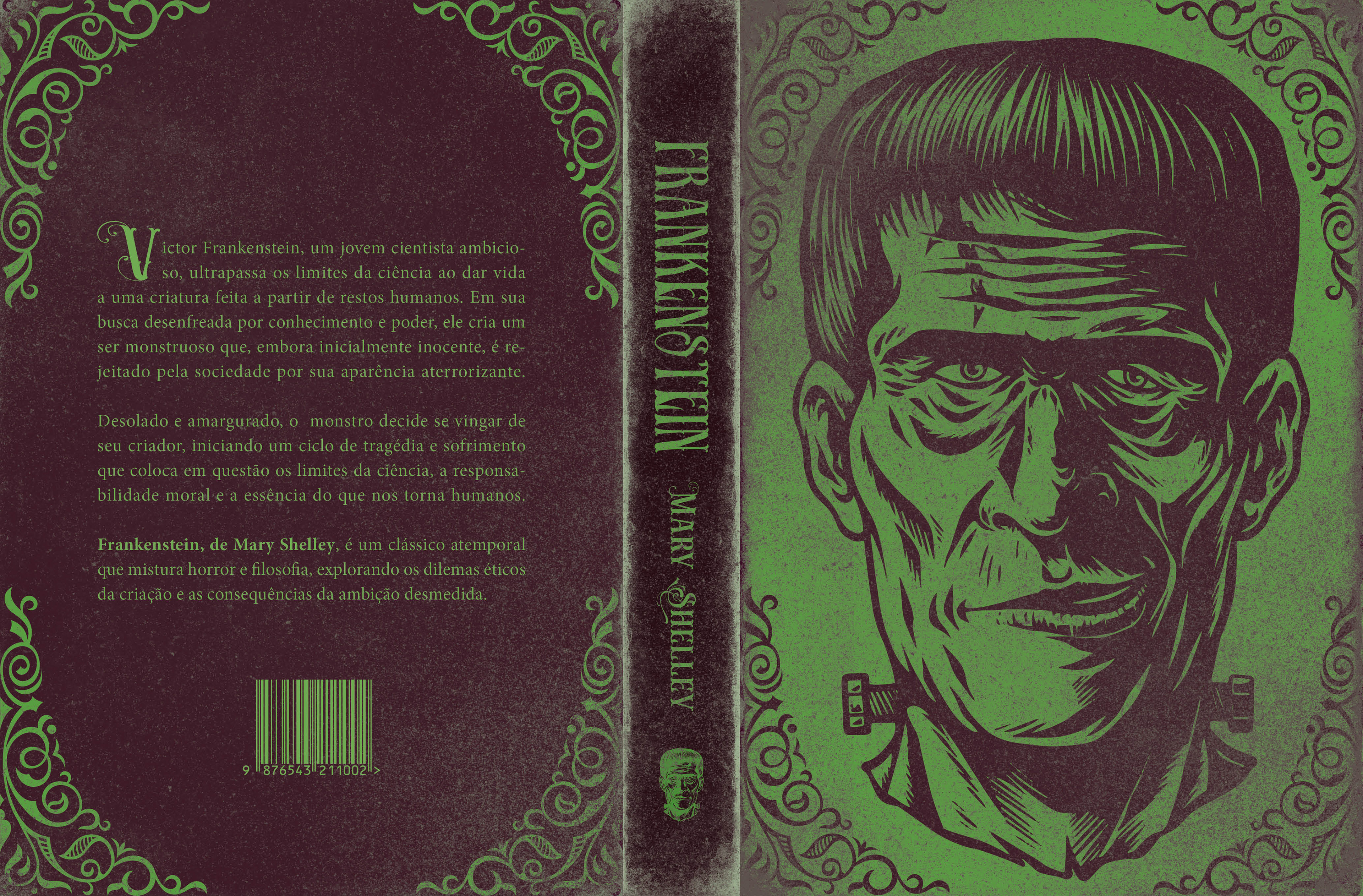 Projeto criado para a obra 'Frankenstein'. No auge de sua ambição científica, Victor Frankenstein desafia os limites da natureza ao dar vida a uma criatura feita de partes humanas. Porém, o que começa como um experimento visionário se transforma em um pesadelo inimaginável, quando a criatura rejeitada pela sociedade e por seu próprio criador, se volta contra ele em busca de vingança e pertencimento. Nesta obra-prima atemporal, Mary Shelley explora temas como a arrogância humana, a responsabilidade moral, e as consequências devastadoras de ultrapassar os limites éticos da ciência. Com uma narrativa ao mesmo tempo emocionante e assustadora, Frankenstein é um marco na literatura, inspirando reflexões profundas sobre a natureza do bem, do mal e do próprio significado da humanidade.